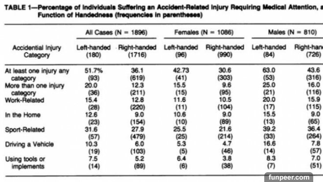 其中滿有趣的是左撇子的人成為酒鬼的機率大約是右撇子的人的3倍。via z9x9