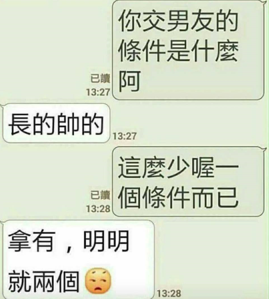 你交男朋友的條件是什麼? 才1個條件這麼少喔?