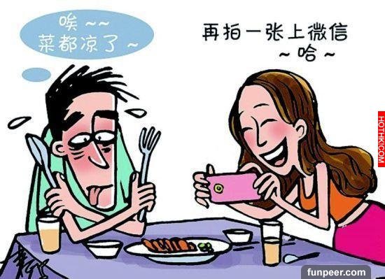 懷孕在身的她即便是去見「准公婆」,仍然沒有丟掉這個「頭可斷,拍照不能忘」的習慣。面對一桌子美食,她不光拍了「全家照」,還將每份菜餚拍了「單照」, 遇到不滿意的圖片還刪了重拍;而且,照片沒拍好,她還不讓人動筷子。讓她沒想到的是,足足一刻鐘的等待最終招致男友父母的不滿,兩人竟因此分道揚鑣。